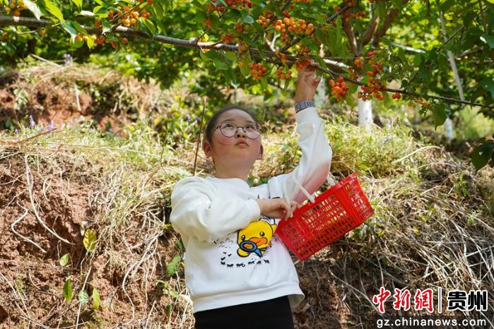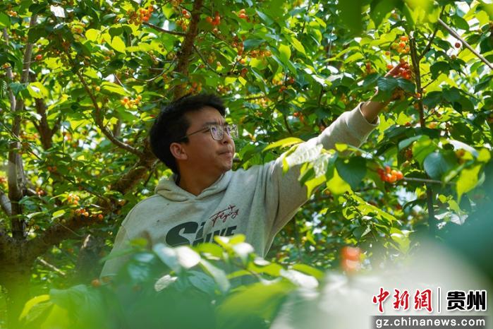 眼下,正值樱桃成熟时节,贵州省毕节市威宁彝族回族苗族自治县的1.2万余亩樱桃陆续成熟,抢“鲜”上市,吸引了众多游客前来采摘,果农们抢抓时节采摘。近年来,威宁自治县依托当地得天独厚的生态资源优势,大力发展樱桃种植,打造特色休闲采摘农业,让生态优势转化为经济优势,随着樱桃产业的蓬勃发展,促进群众增收致富。(赵庆能 摄)