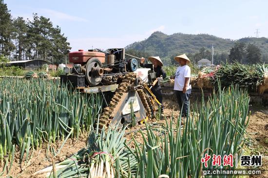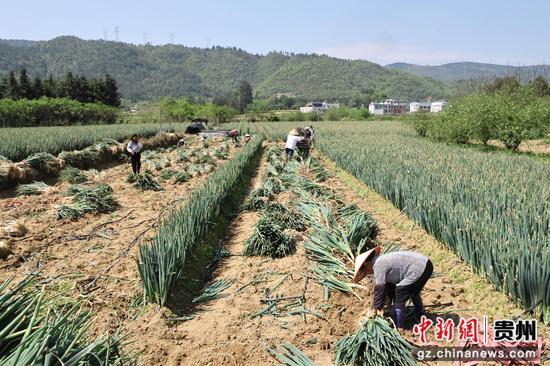 中新网贵州新闻4月14日电(白华秀) 近日,独山县基长镇阳地村50亩大葱迎来集中采收季,田间地头处处是农户忙碌的身影,优质大葱抢“鲜”上市,奏响了春日的丰收序曲。