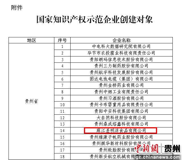 贵州18家企业入选国家知识产权示范企业 酸汤企业入选